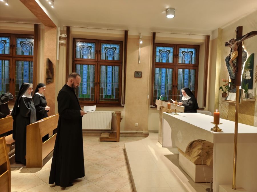 Po wspólnych Nieszporach, z rąk Matki Barbary Dendor OSB, ksiądz Marek otrzymał medalik świętego Ojca Benedykta i dołączył do grona oblackich nowicjuszy naszego klasztoru.