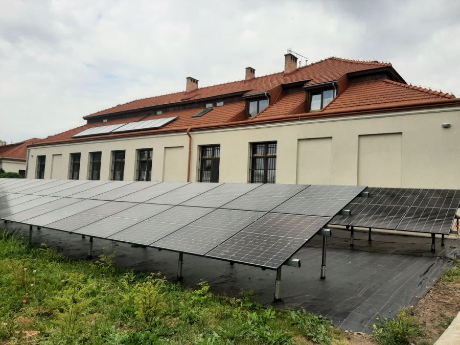 W ogrodzie przy naszym klasztorze w ostatnich miesiącach została zamontowana instalacja fotowoltaiczna o mocy 36,9 kWp, (panele fotowoltaiczne, urządzenia towarzyszące, inwertery, falownik, itp.). Wykonano naziemną konstrukcję wsporczą dla montażu 90 szt. paneli na gruncie.
